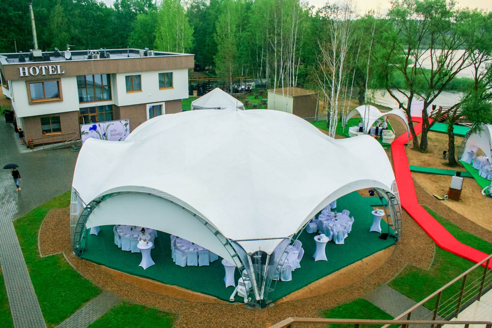 - Individual: Náš tým s vámi může úzce spolupracovat na vytvoření zcela individualizované konstrukce stálého stanu. Od jedinečných tvarů a velikostí až po personalizované značky a designové prvky, dokážeme vaši vizi oživit.