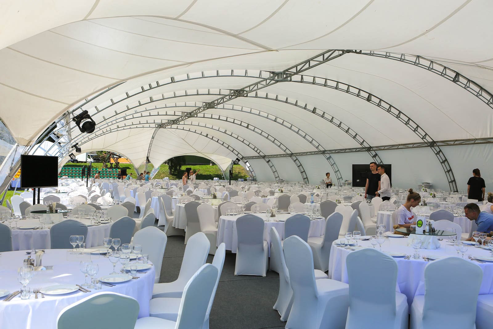Společnost LUXTENT nabízí možnost nákupu nebo pronájmu obloukových stanů ArcoTenso Grand v České republice. Tento model je ideální pro velké akce s více než 1000 hosty. Celková plocha obloukového stanu se může pohybovat od 600 do 1500 metrů čtverečních. S ArcoTenso Grand od LUXTENT můžete vytvořit působivý prostor schopný pojmout mnoho lidí, poskytnout pohodlí a splnit potřeby všech účastníků akce.