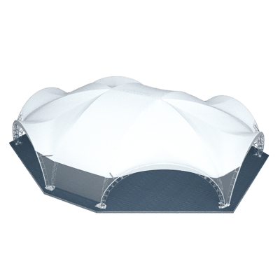 Model stanu Membrane nabízí individuální a nekonvenční design, který upoutá pozornost. Jeho kupolovitý tvar a moderní styl na návštěvníky zapůsobí. S robustním ocelovým rámem a vysoce pevným materiálem poskytuje stabilitu a ochranu před živly. Membrána je vhodná do různých prostředí, od volnočasových oblastí až po párty, kavárny a sportovní pavilony. Představuje výjimečnou řemeslnou zručnost, odolnost a podmanivou estetiku a vytváří prohlášení, které u vašeho publika rezonuje.
