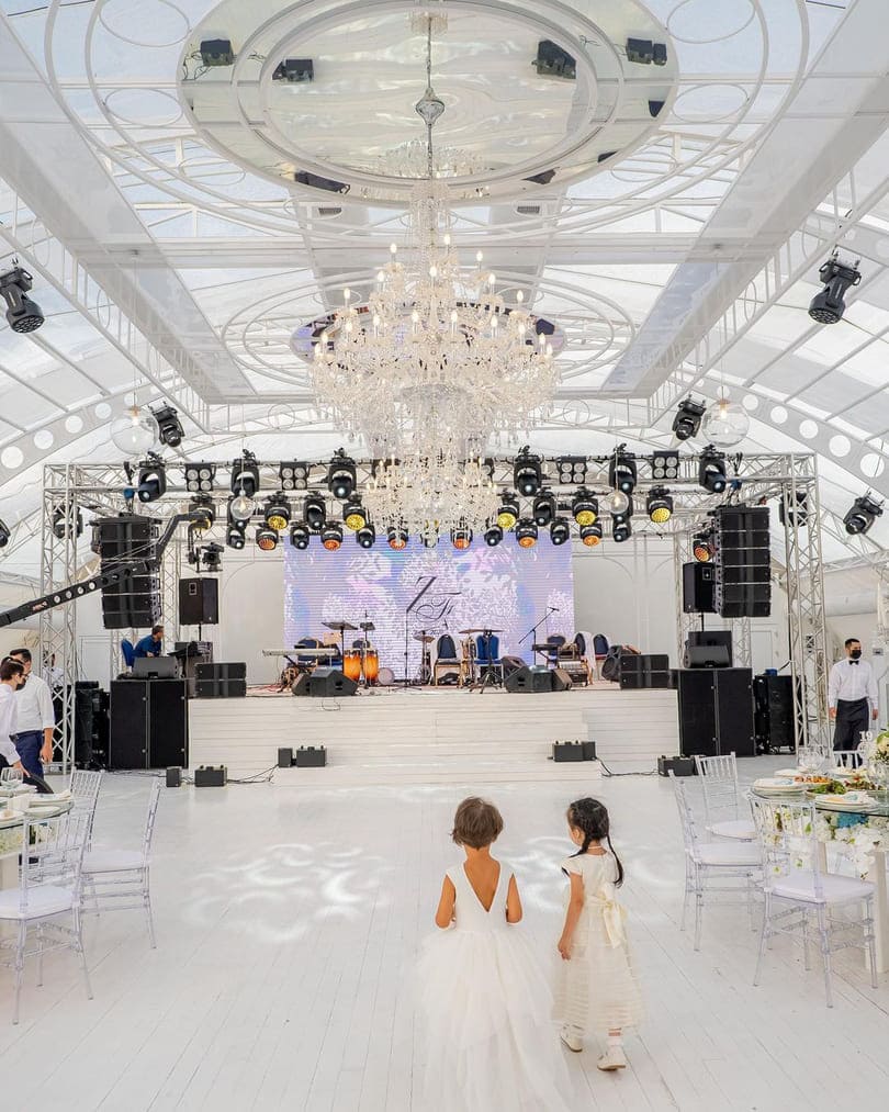 V LUXTENTu si můžete objednat dekorační služby, které budou zahrnovat (na Vaše přání): zdobení kupole a stěn designovými látkami a úpravu prostoru uvnitř i vně pavilonu pomocí živých i umělých rostlin.