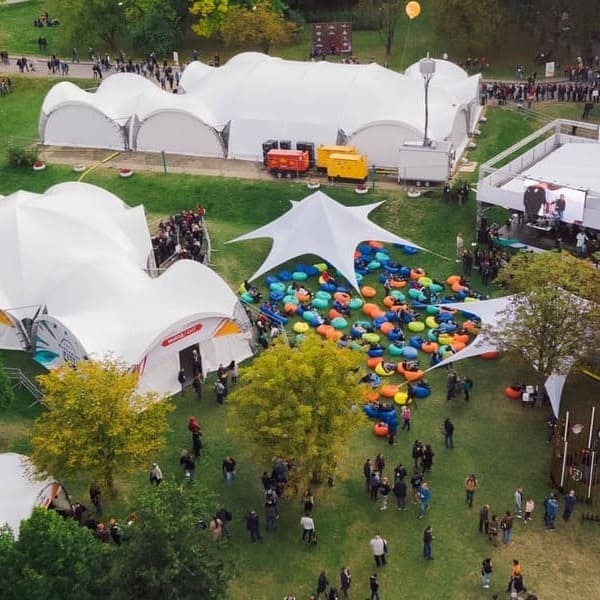 Eventové stany jsou ideální pro festivaly, koncerty a různé hromadné akce bez ohledu na jejich rozsah. Tyto velké pavilony nabízejí flexibilitu vzhledem k jejich velikosti a tvaru, mohou být umístěny samostatně nebo spojeny do skupin s komfortním mikroklimatem, osvětlením a ventilačním systémem pro optimální prostředí uvnitř.