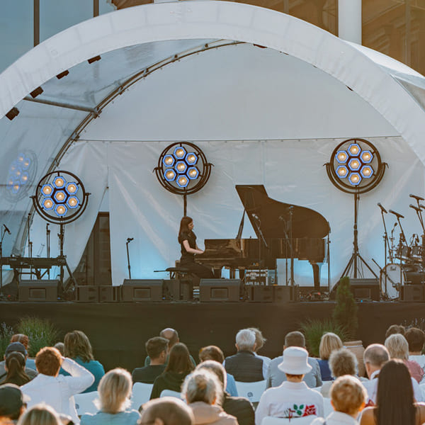 Velké stany na hudebních festivalech hrají důležitou roli při zastřešení jak jeviště, tak celého hudebního areálu. Tyto konstrukce chrání vybavení a účinkující před nepředvídatelnými povětrnostními podmínkami, jako je déšť nebo horké slunce, což umožňuje pokračování festivalu za jakýchkoli podmínek. Stany navíc vytvářejí pohodlný prostor pro diváky, poskytují stín a ochranu před větrem. Zlepšují také akustiku a pomáhají vytvářet lepší zvuk. Díky tomu velké stany poskytují bezpečnost, pohodlí a vysokou kvalitu pro hudební akce.
