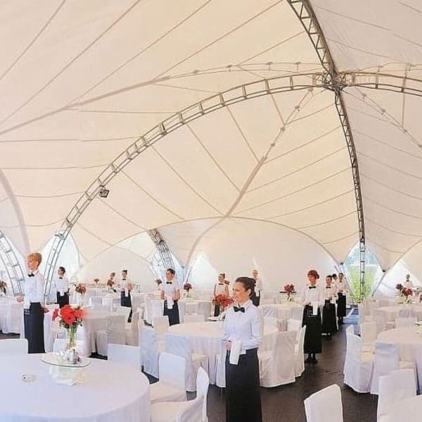 Přijměte nejnovější trend v zábavním průmyslu pomocí našich banketových sálů a tematických kaváren a restaurací ve stanech . Naše společnost nabízí prostorné stanové konstrukce, které lze upravit tak, aby zahrnovaly taneční parkety, pódia, barové prostory a další základní součásti moderních klubů. Banketové stany LUXTENT jsou ideální pro sezónní večírky, oslavy a velké venkovní akce. Tyto vysoce kvalitní, odolné a spolehlivé stany se snadno a rychle montují a mohou být vybaveny klimatizačními systémy a podmanivým osvětlením. Díky široké škále barev, dekorativním možnostem zónování a přizpůsobitelným tvarům si můžete vybrat individuální řešení, které se hodí pro každou příležitost.