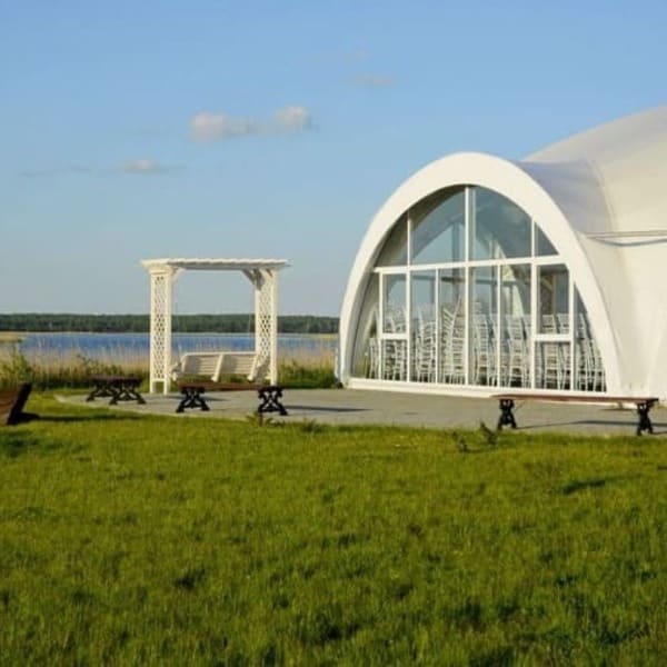 Naše pavilony pro venkovní stravování představují ideální alternativu k tradičním restauracím a kavárnám, umožňují pohodlně ubytovat větší počet hostů současně. Jsou vybaveny prostornými banketovými sály, kuchyňskými zónami a technickými zázemími, včetně skladů pro vybavení, což zajišťuje komfort jak pro hosty, tak pro personál.
