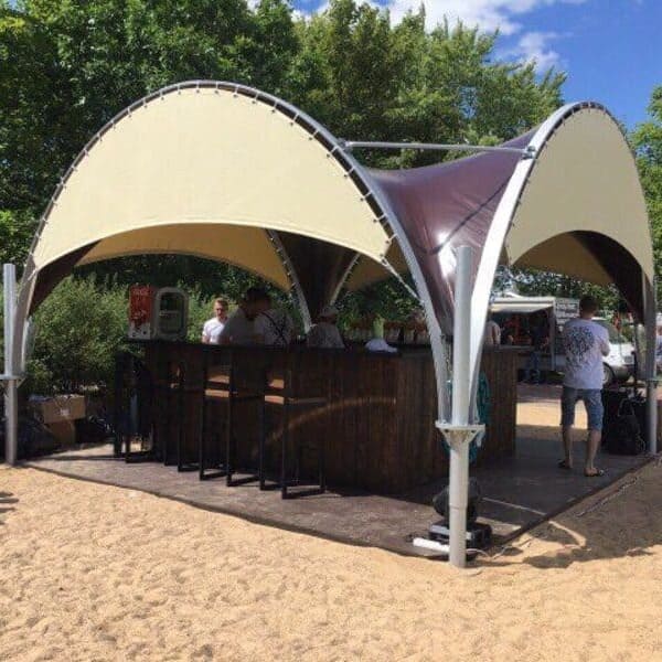 Nabízíme elegantní a moderní plážové přístřešky pro kavárny, restaurace a bary u vodních ploch. Naše rychlomontážní stany jsou ideální pro cateringová místa a odpočinkové zóny na pláži pro hotely a country kluby. Tyto struktury lze snadno označit nebo stylizovat podle celkového konceptu místa.