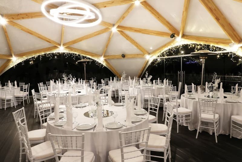 Stavba kavárny pomocí stanových konstrukcí nabízí unikátní designový koncept poskytující komfortní prostor pro hosty. I přes vizuální jednoduchost stanů nabízí možnost vybudovat plně funkční restauraci s minimálními finančními investicemi. Navíc jsou tyto stany všestranné a lze je snadno rozšířit nebo rozdělit do více zón, což umožňuje škálovatelnost.