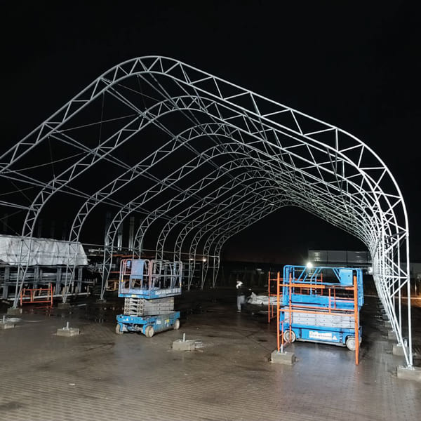 Náš tým se specializuje na výstavbu hangárů na klíč, poskytuje celou řadu služeb včetně návrhu a montáže. Používáme odolné materiály odolné vůči drsným podmínkám. Náš tým si uvědomuje důležitost času v podnikání a rychle a efektivně realizuje projekt a zajišťuje rychlou instalaci vašeho nového stanového hangáru.